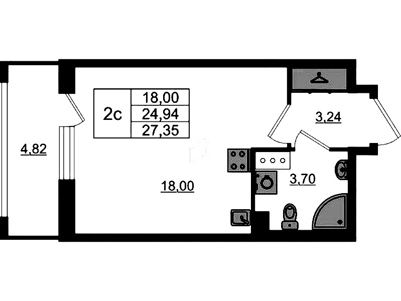 Квартира-студия на 15-ом этаже 24,94 кв.м