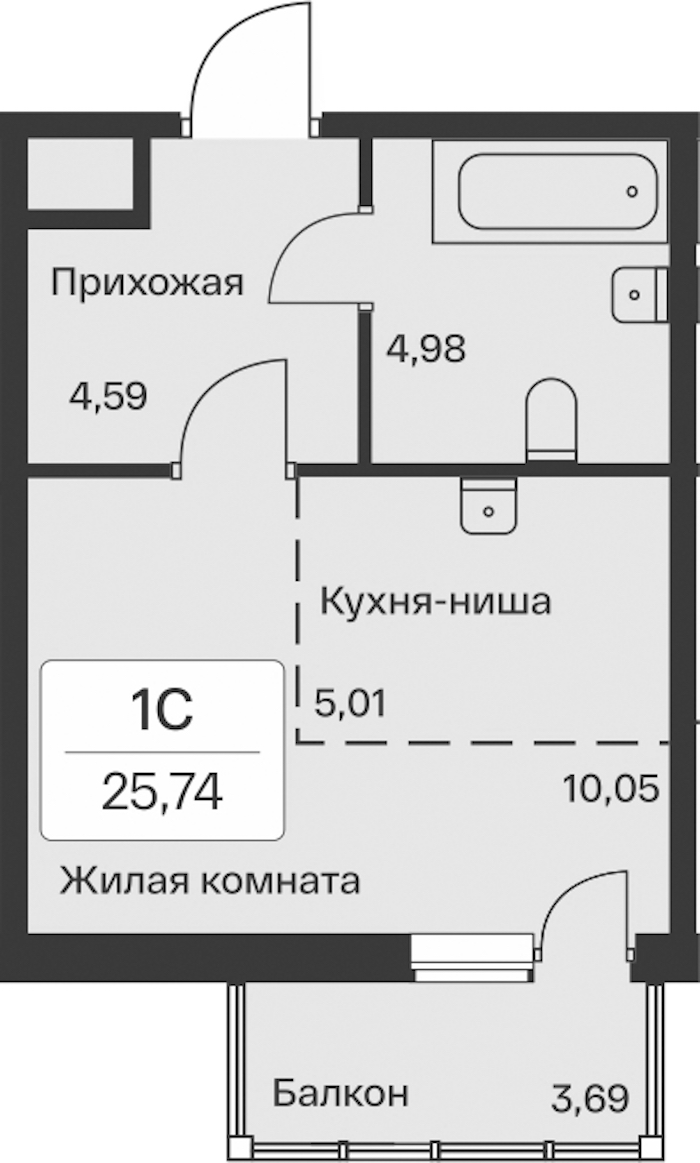 - Количество комнатСтудия