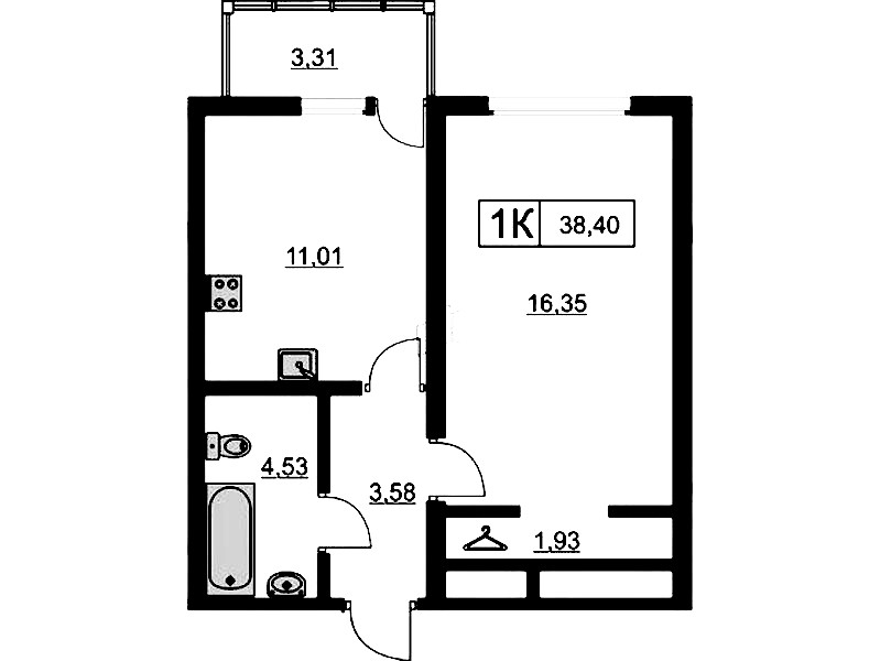 - Площадь38,1 м2