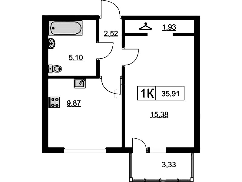 Однокомнатная квартира на 3-ем этаже 35,5 кв.м