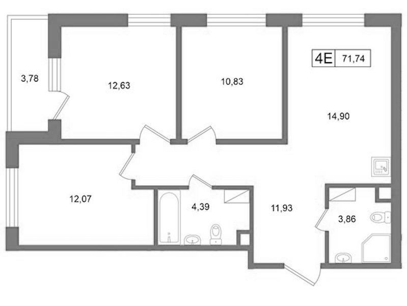 Трёхкомнатная квартира на 1-ом этаже 71,74 кв.м