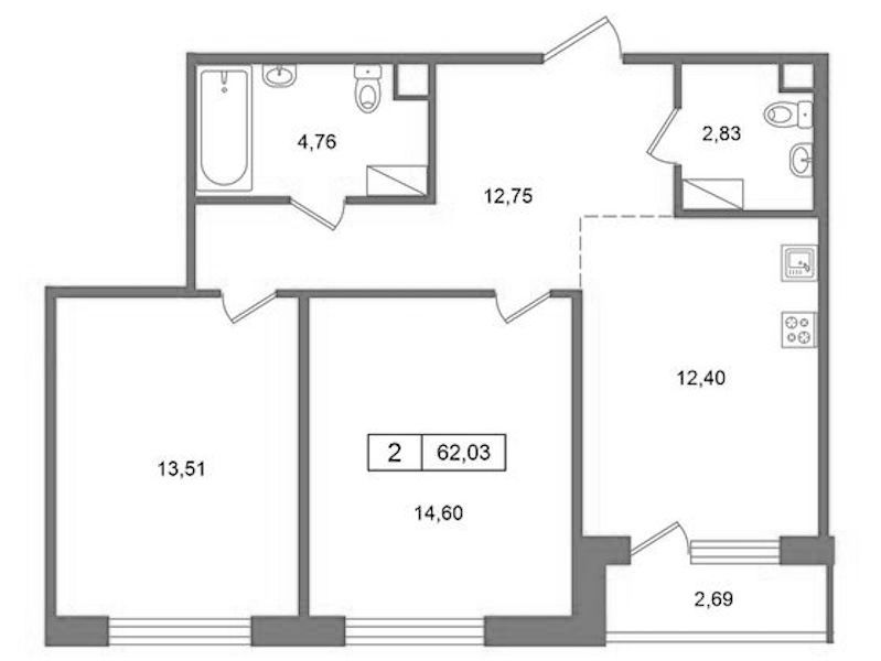 - Площадь62,19 м2