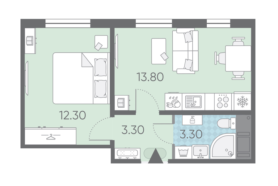 • Площадь32,7 м2