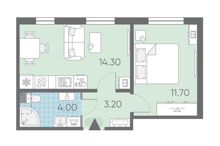 • Площадь кухни14,3 м2