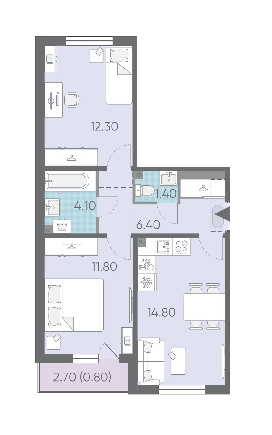 - Площадь51,6 м2