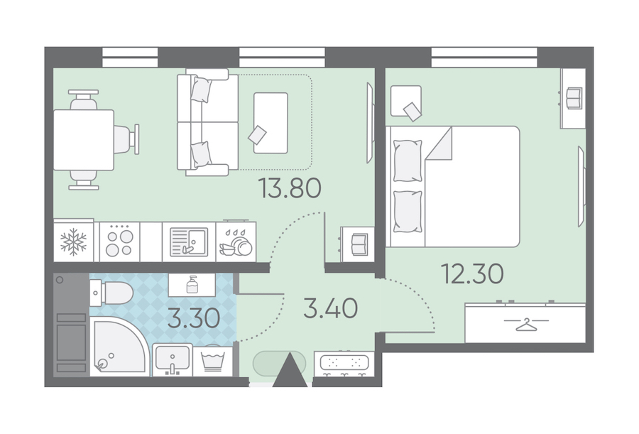 • Площадь32,8 м2
