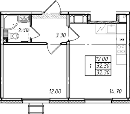 Однокомнатная квартира на 5-ом этаже 32,3 кв.м