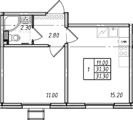 - Площадь31,3 м2