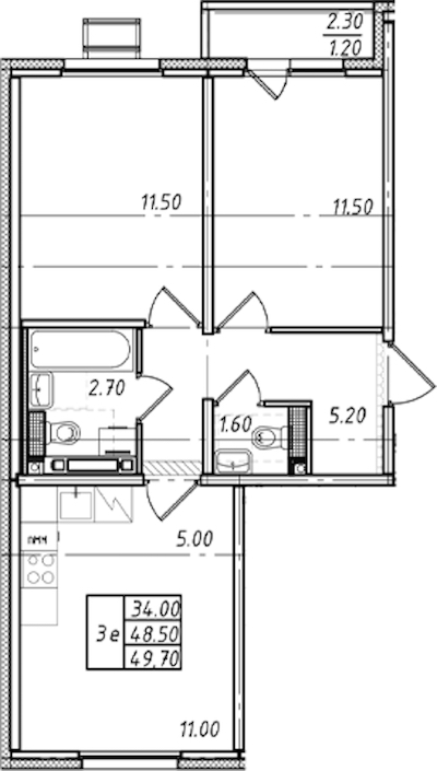 Двухкомнатная квартира на 12-ом этаже 49,7 кв.м