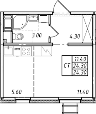 Квартира-студия на 3-ем этаже 24,3 кв.м