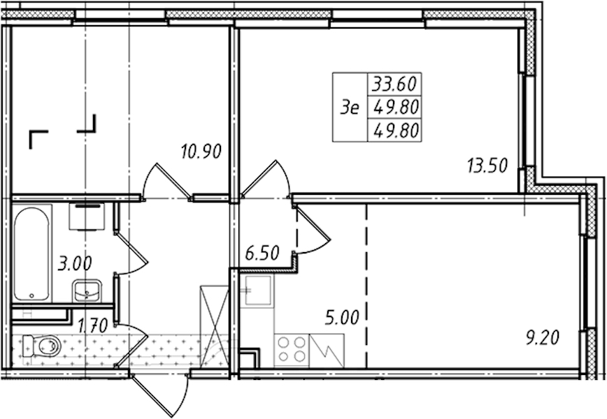 - Площадь49,8 м2