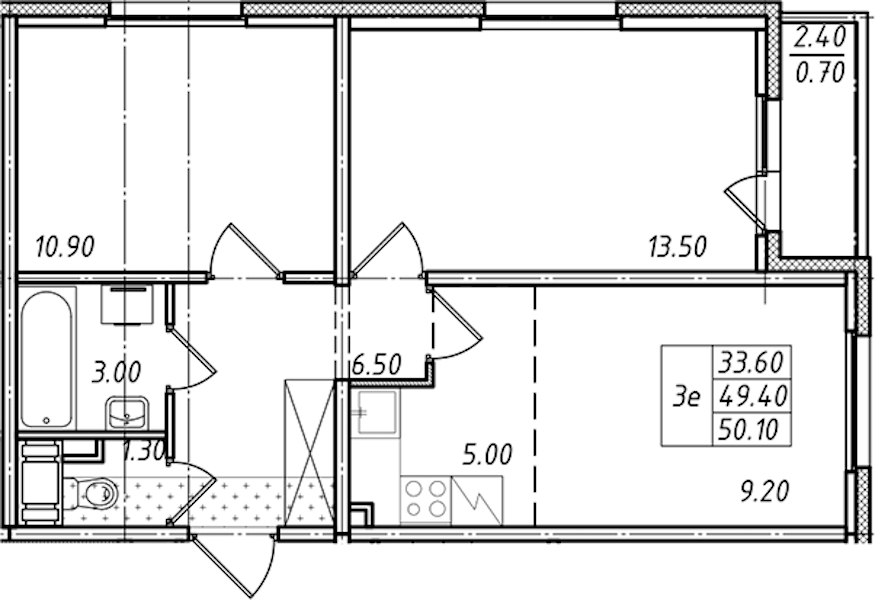 - Площадь50,1 м2