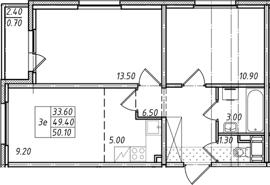 Двухкомнатная квартира на 13-ом этаже 50,1 кв.м