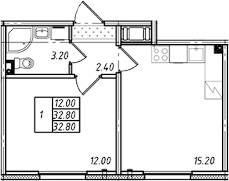 • Площадь32,8 м2