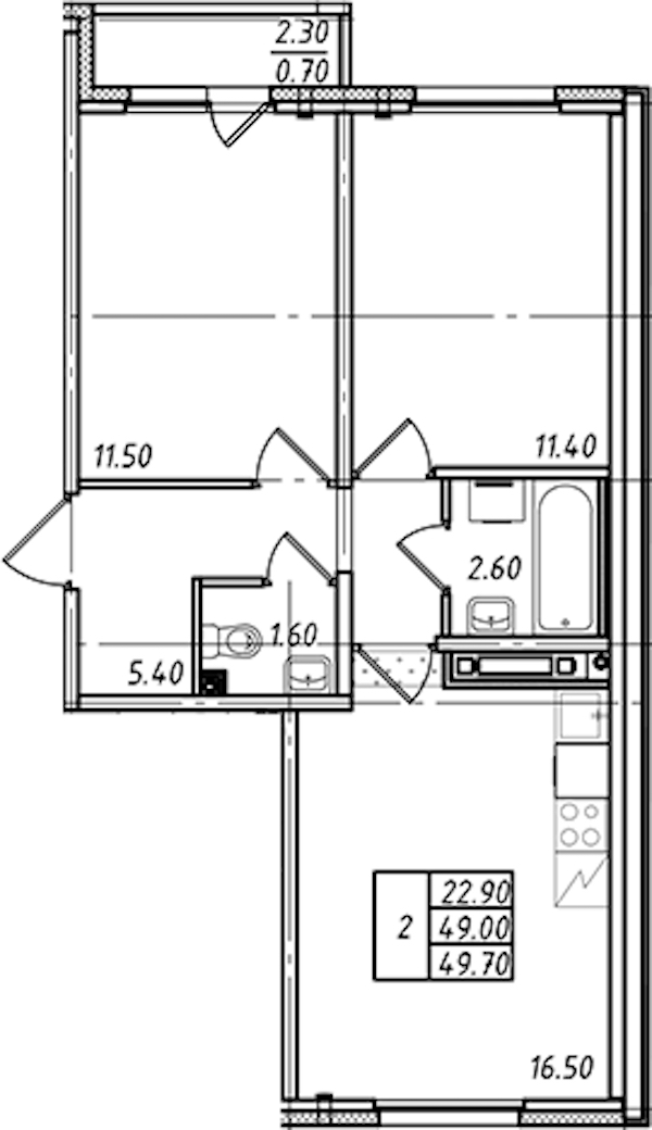 - Площадь49,7 м2
