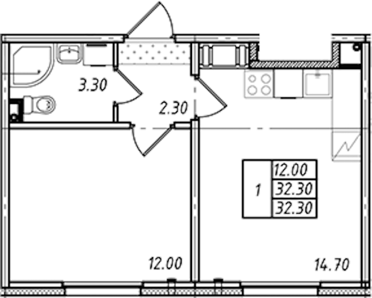 • Площадь32,3 м2