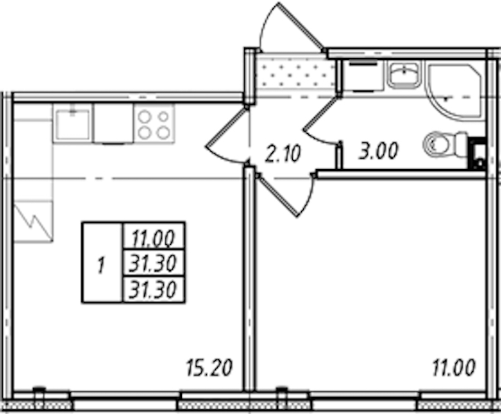 • Площадь31,3 м2