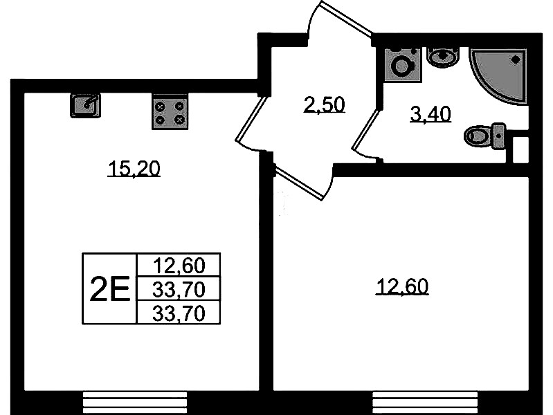 Однокомнатная квартира на 9-ом этаже 33,7 кв.м