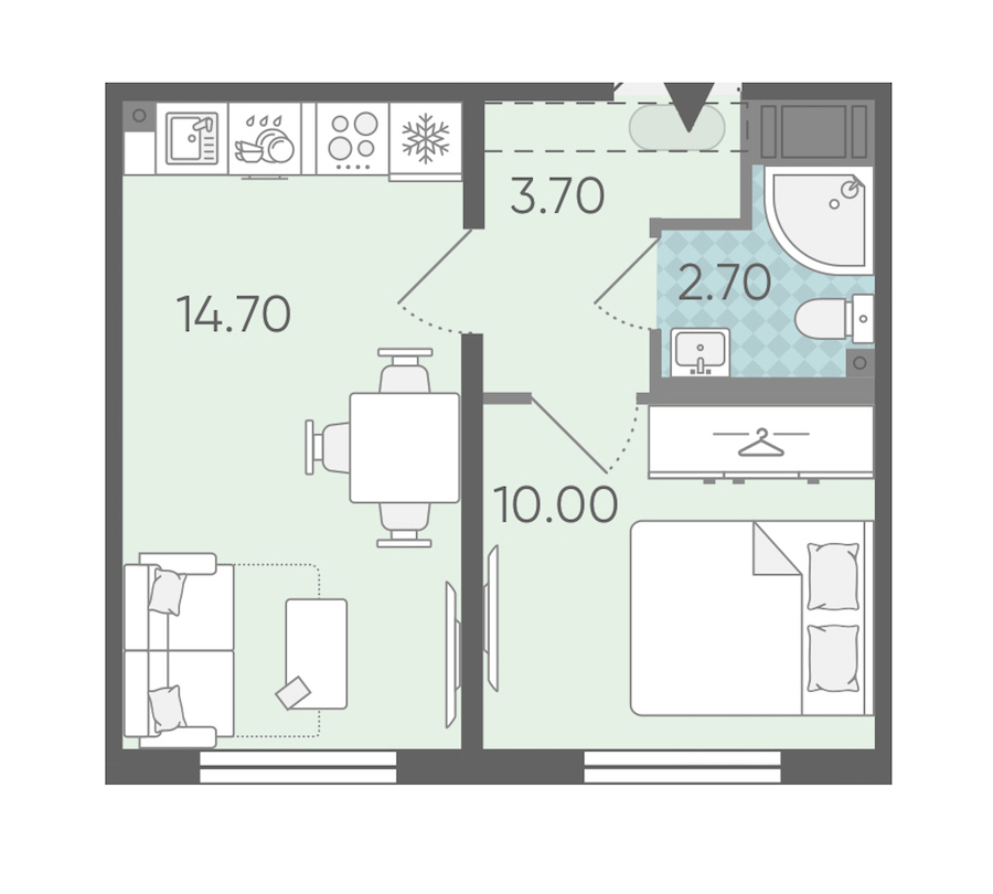 Однокомнатная квартира на 11-ом этаже 31,1 кв.м