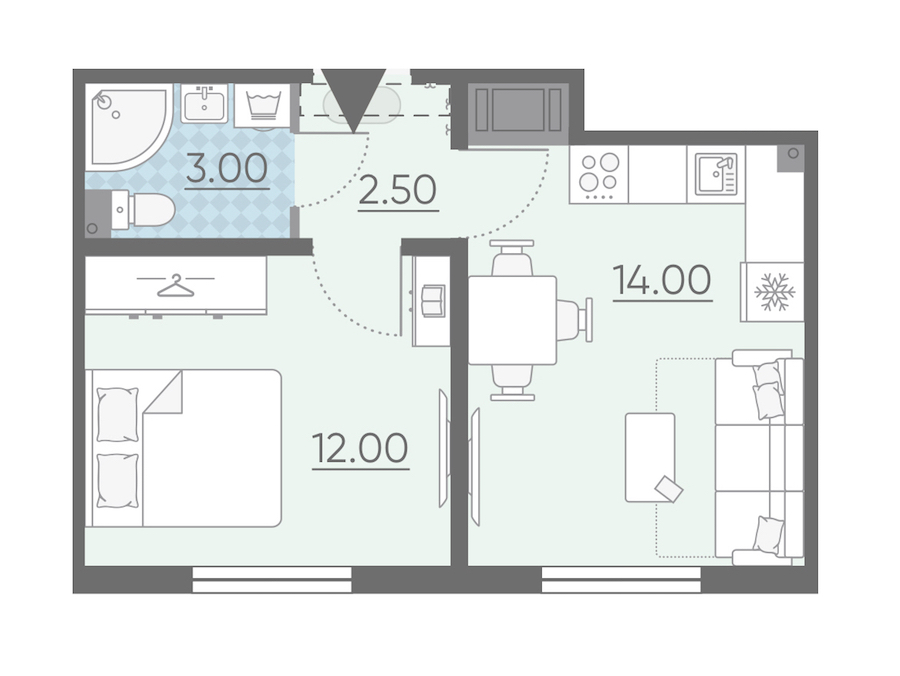 • Площадь кухни14 м2