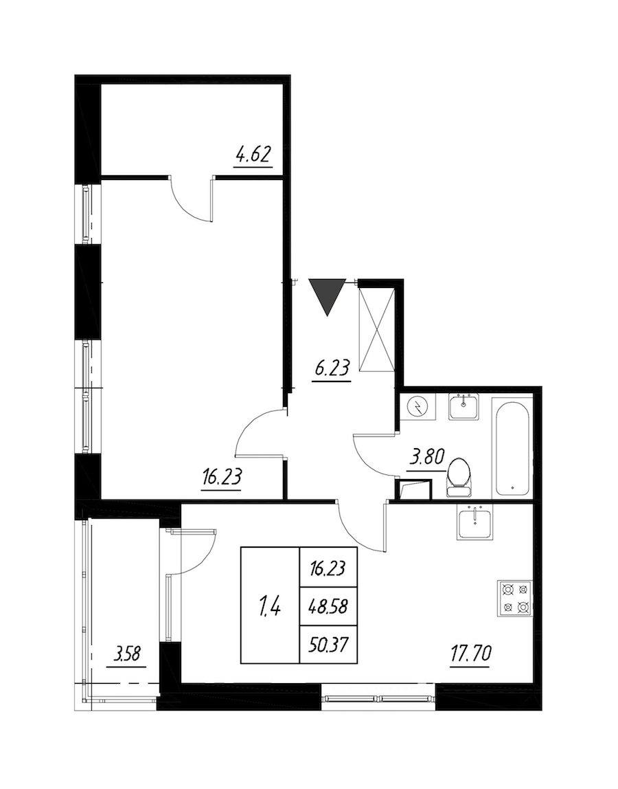 Однокомнатная квартира на 1-ом этаже 46,8 кв.м