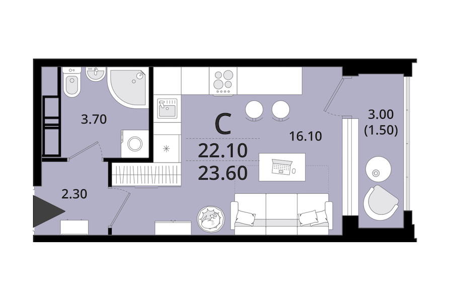 • Площадь23,6 м2