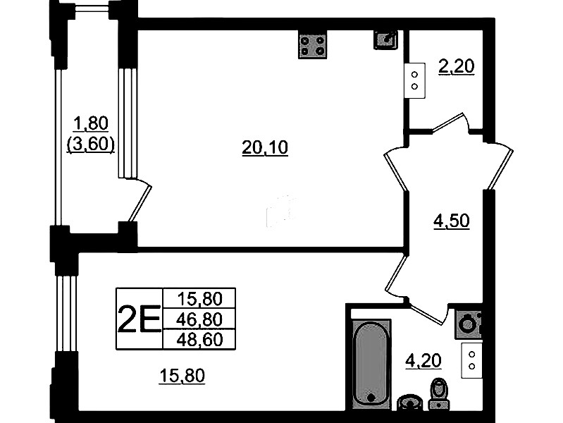 Однокомнатная квартира на 3-ем этаже 48,6 кв.м