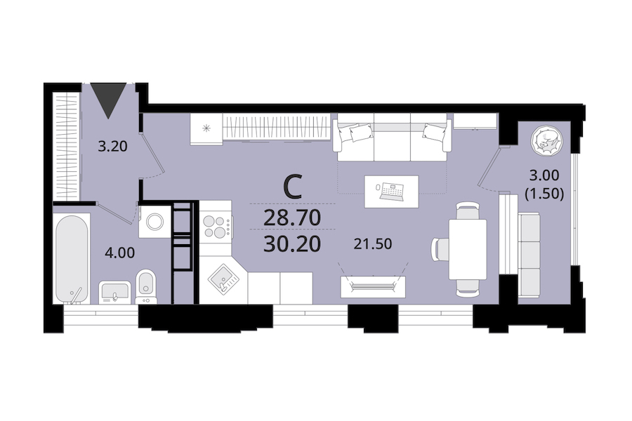 - Площадь29,6 м2