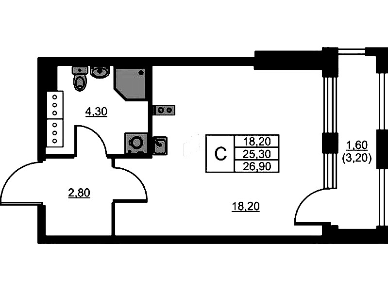Квартира-студия на 5-ом этаже 26,9 кв.м