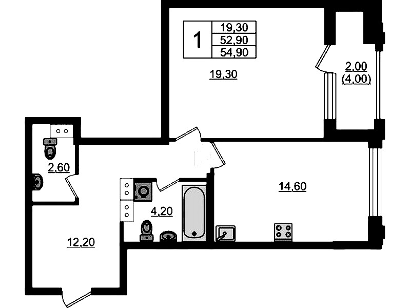 • Площадь54,9 м2