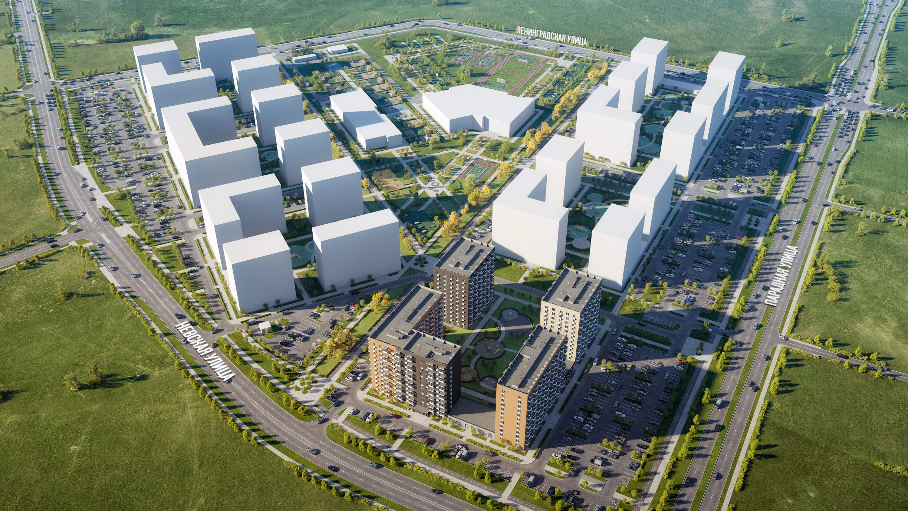 «Таллинский парк» включает 16 жилых домов, детский сад и школу. В проекте появится центральный сквер с обильным озеленением, а через весь квартал протянутся широкие пешеходные бульвары. В зелёных дворах-парках будут оборудованы современные детские и спортивные площадки, обустроены места для отдыха. На первых этажах разместятся магазины, кафе и другие сервисы.