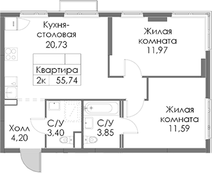 • Площадь55,74 м2