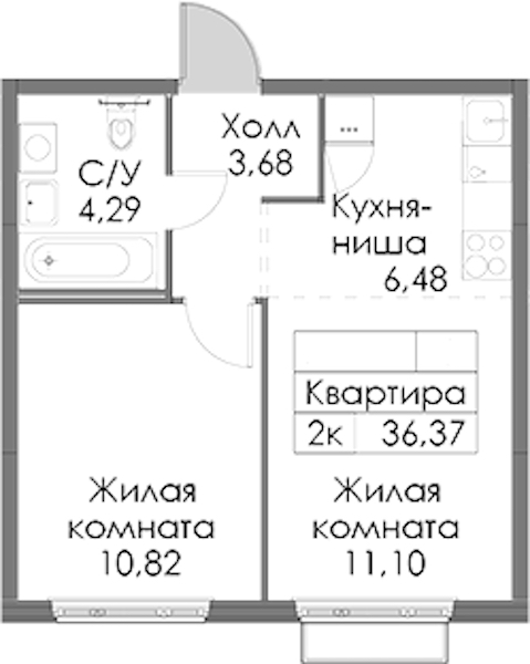 • Площадь36,37 м2