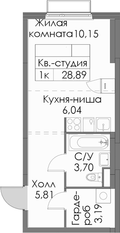 Квартира-студия на 12-ом этаже 28,89 кв.м