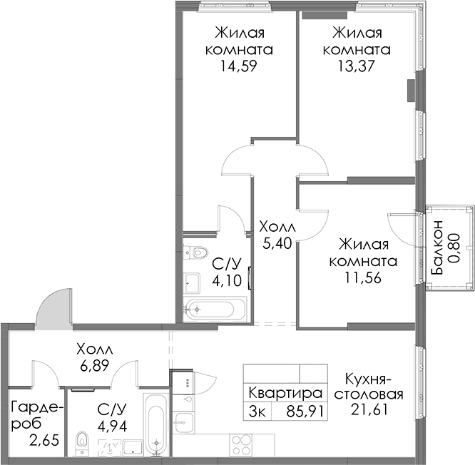 • Площадь85,91 м2