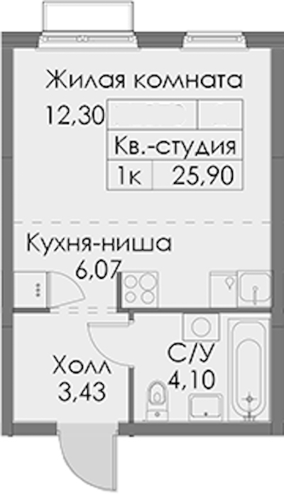 Квартира-студия на 11-ом этаже 25,9 кв.м