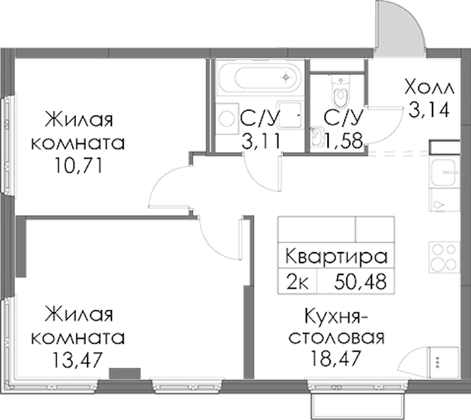 • Площадь50,48 м2