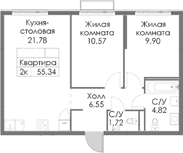• Площадь55,34 м2