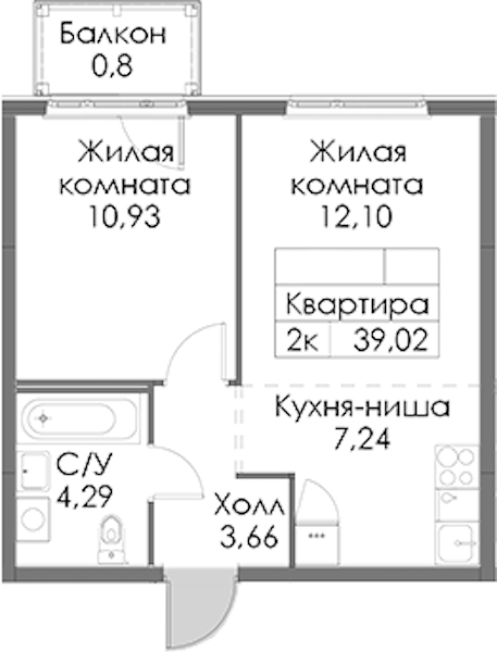 • Площадь39,02 м2