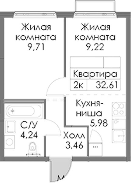 - Площадь32,61 м2