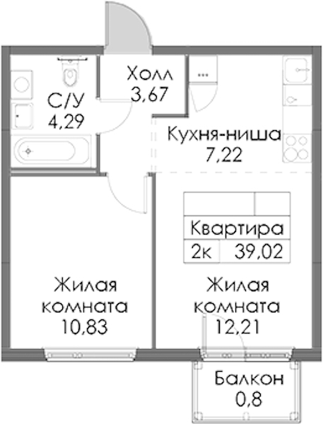 • Площадь39,02 м2