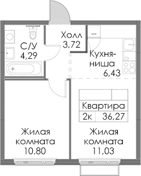 • Площадь36,27 м2