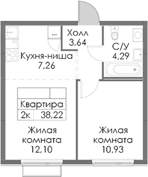 • Площадь38,22 м2