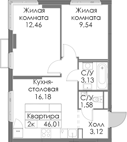 • Площадь46,01 м2