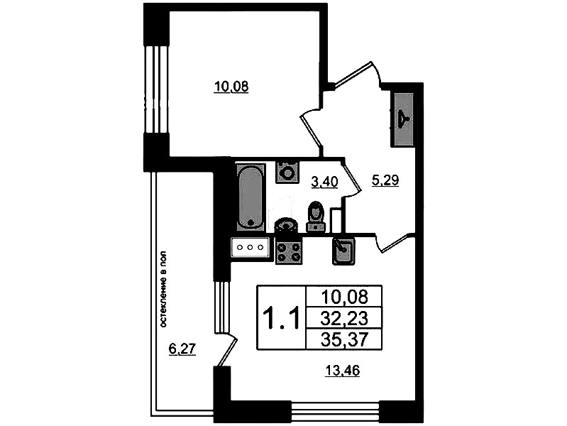 Однокомнатная квартира на 8-ом этаже 32,23 кв.м