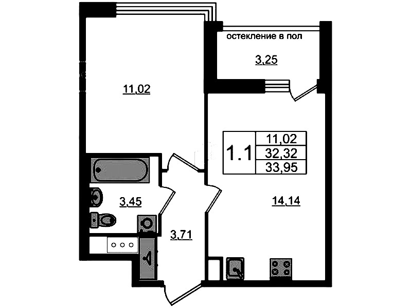 Однокомнатная квартира на 8-ом этаже 32,32 кв.м