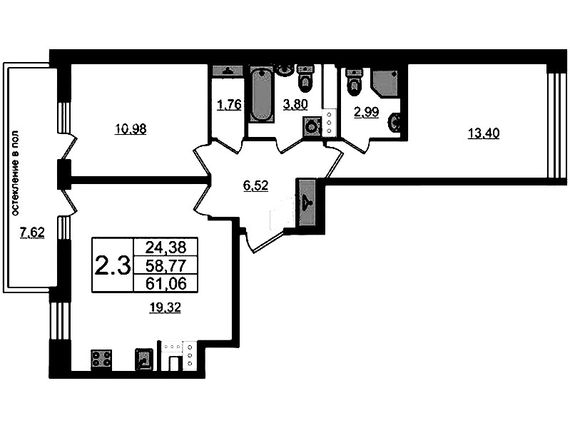 • Площадь58,77 м2