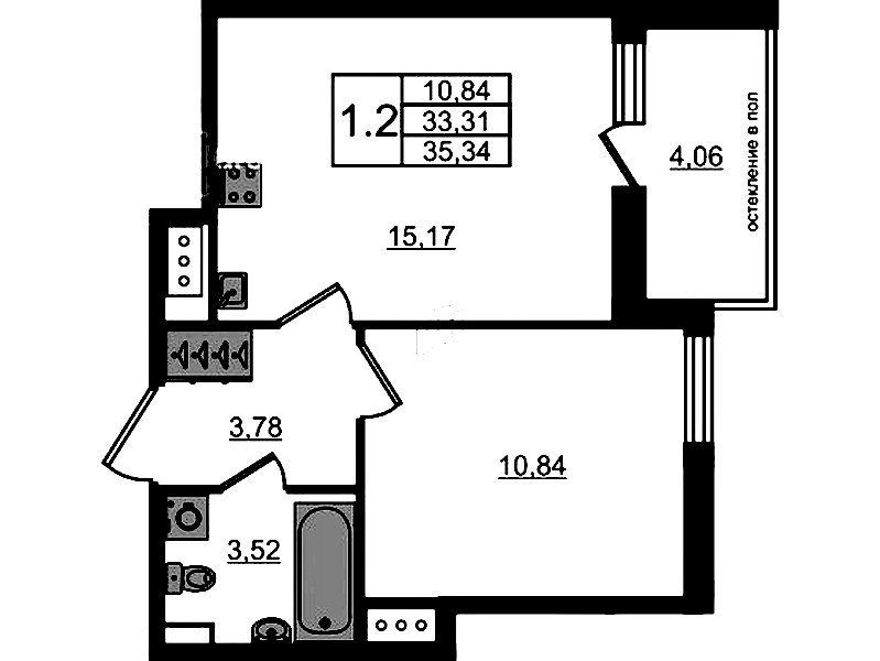 Однокомнатная квартира на 9-ом этаже 33,31 кв.м