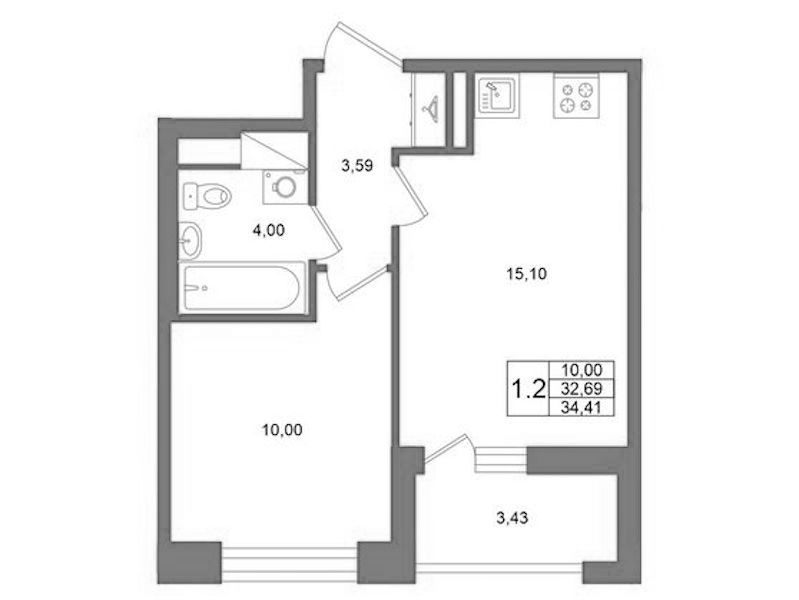 Однокомнатная квартира на 9-ом этаже 32,69 кв.м