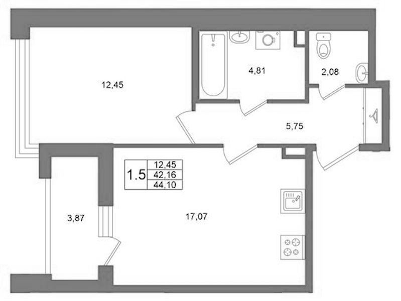 • Площадь42,16 м2